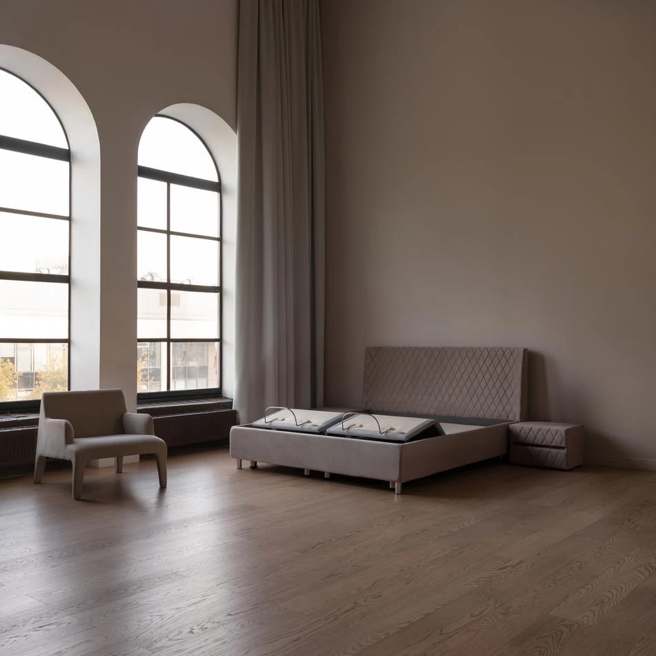 Veliki krevet koji će se sigurno dopasti ljubiteljima tehnologije. Radi tiho i upravlja se malim daljinskim upravljačem. Možete podignuti deo za noge ili uzglavlje, na primer, kada želite da čitate. Jednim pritiskom na dugme krevet se vraća u horizontalni položaj. Ogroman plus je i prostor za skladištenje, pravo otkriće!